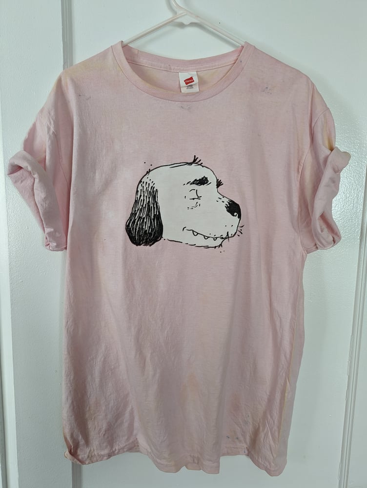 Hand drawn dog graphic on hand dyed 100% cotton unisex Hanes t-shirt. This shirt has been preshrunk and heat treated for color fastness.